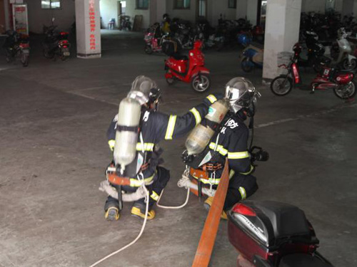 5月14日上午,常州市公安局消防大队特勤中队在常州卫生高职校举行人员密集场所应急救援拉动演练,特勤中队共5辆消防车、20余名消防官兵参加了演练。 演练假设我校F楼地下车库发生火灾。事故发生后,学校教职工立即启动固定消防设施开展自救,同时向119指挥中心报警。 指挥中心接到报警后,调集特勤中队5辆消防车及20余名消防官兵赶赴现场。在现场指挥员的指挥下,按照灭火作战预案迅速展开战斗。为了勘察车库内的具体情况,特勤中队现场组织两个侦察小组佩戴着空气呼吸器深入车库内部进行侦察,由于车库内浓烟太大,为尽快灭火,消防官兵架起排烟装置进行现场排烟,并铺设消防水带深入车库内部进行灭火。 在现场指挥员的指挥下,各参战小组协同配合作战,“大火”被成功扑灭,被困人员全部被救出,火灾未造成人员伤亡,演练取得圆满成功。 卫生高职校