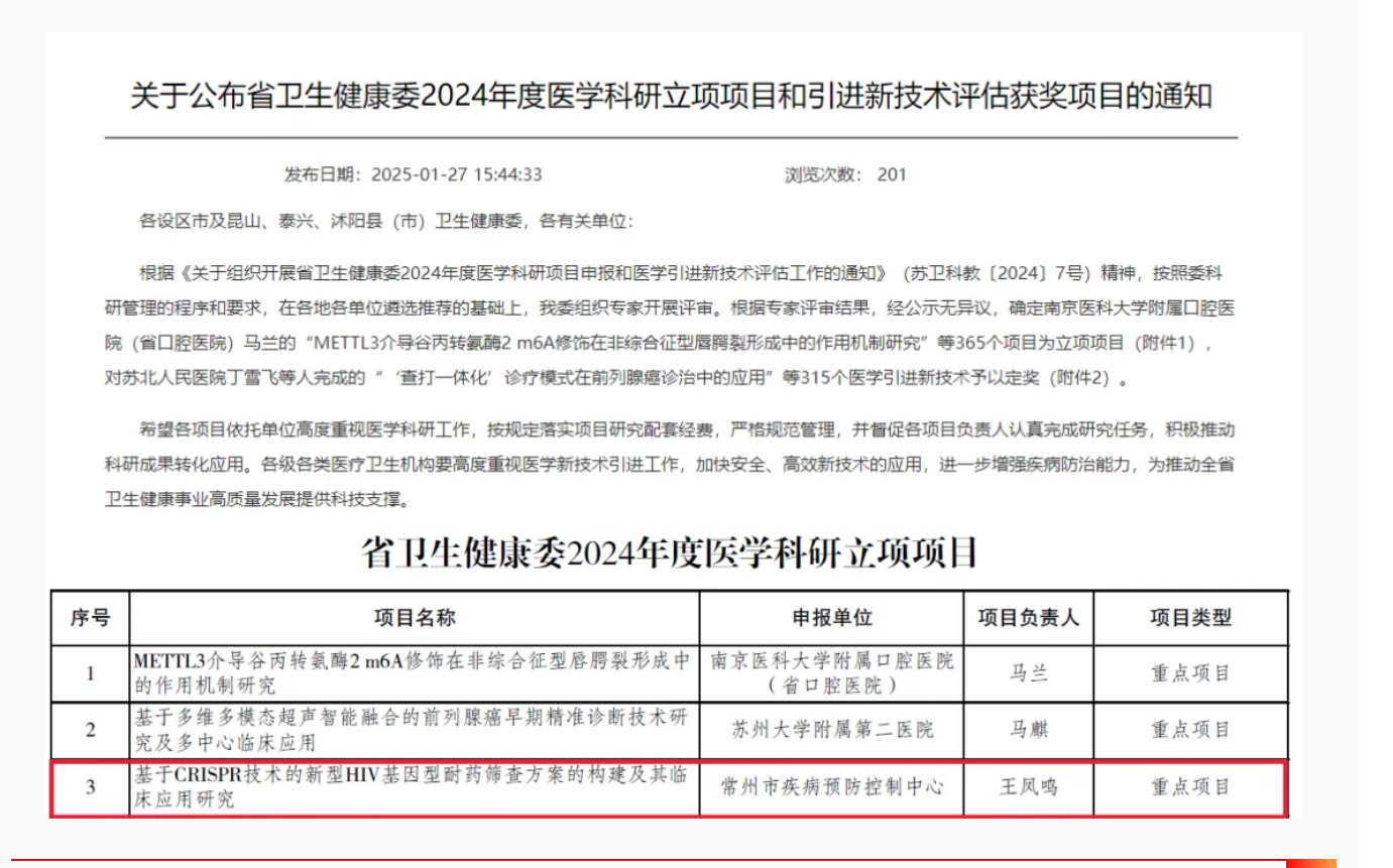 | 常州疾控医防融合模式新实践获省卫健委重点项目立项 |