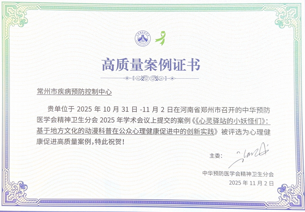 | 常州疾控心理健康促进工作获国家级荣誉,推动全民健康素养再上新台阶 |