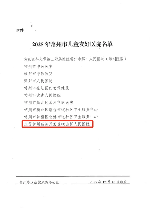 | 经开区:横山桥人民医院成功获评常州市儿童友好医院 |
