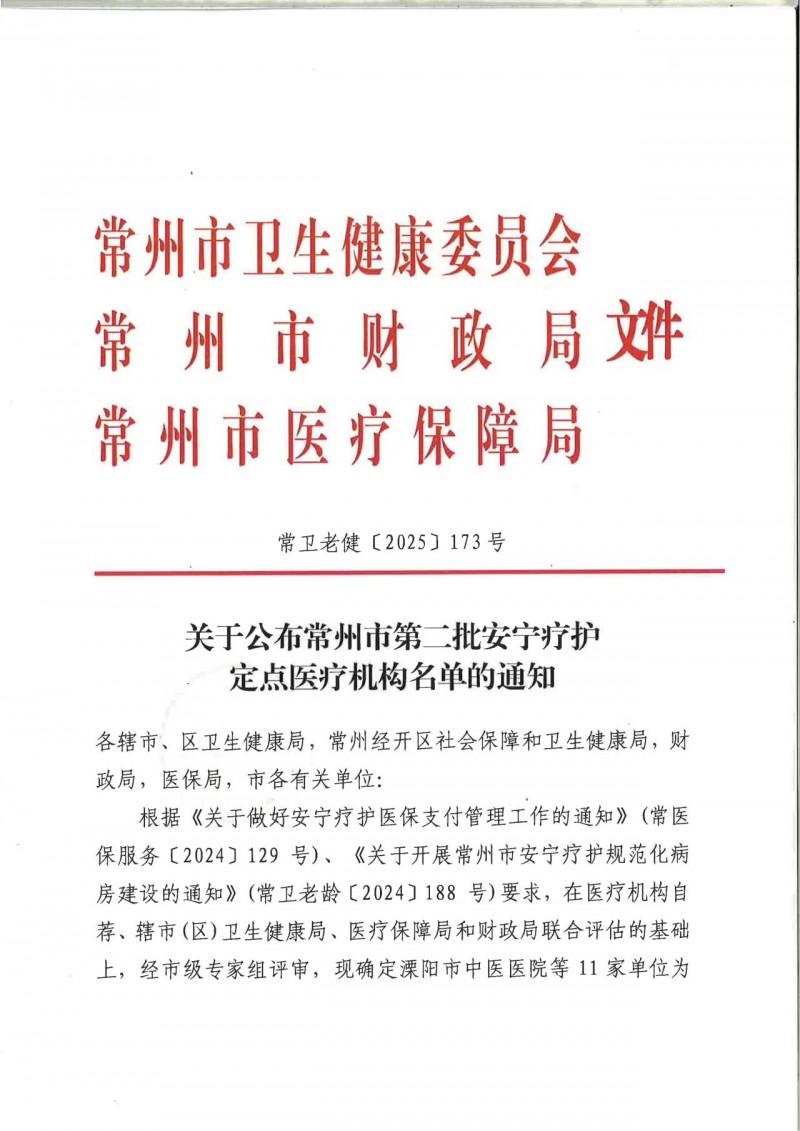 近日,天宁区郑陆镇卫生院、郑陆镇焦溪卫生院被确定为“常州市第二批安宁疗护定点医疗机构”,这标志着天宁区安宁疗护规范化病房建设得到新发展,全区安宁疗护服务工作进入了新阶段。 安宁疗护又称姑息护理、舒缓疗护,主要为疾病终末期患者提供身体、心理、精神等方面照料和人文关怀等服务,减轻或缓解患者疼痛和其他不适症状,帮助患者及家属正确认识和对待死亡。与普通医疗相比,安宁疗护侧重于减轻痛苦、提升生命质量,不再进行创伤性治疗。在安宁疗护病房,医护人员更关注患者的内心感受,注重医患沟通交流和心理疏导,生动诠释“有时,去治愈;常常,去帮助;总是,去安慰”的医者箴言。 |