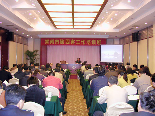 为提升全市除四害工作水平,提高除四害管理人员和工作人员业务技能。10月28日,我市爱卫办特邀江苏省卫生监督所除害防病专家顾健主任医师来常进行“四害及其防治”专题培训。来自我市的爱国卫生义务监督员、各区爱卫办工作人员、各街道办分管除四害工作人员、部分农贸市场负责人和市、区卫生监督所工作人员及监督员、消杀员代表计120余人参加培训。培训中,顾健主任医师就蚊、蝇、蟑螂、老鼠的形态、生活习性、种群特点等进行了逐一讲解,同时,针对城市综合防治四害措施做了重点解读,使参加培训的同志感到不仅丰富了理论知识,更掌握了实践操作方法。 市爱卫办